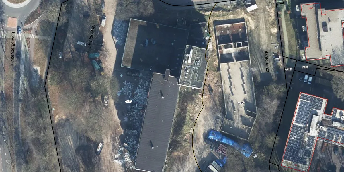 Het perceel waarop Infanterielaan 21 staat heeft een oppervlakte van 1,1 ha. Dit is een zeer groot perceel. De perceeloppervlakte wordt geregistreerd door het Kadaster. Gedetailleerde informatie over de maten van dit perceel kunt u vinden in het rapport Kadastrale kaart met maatvoering van Infanterielaan 21.
