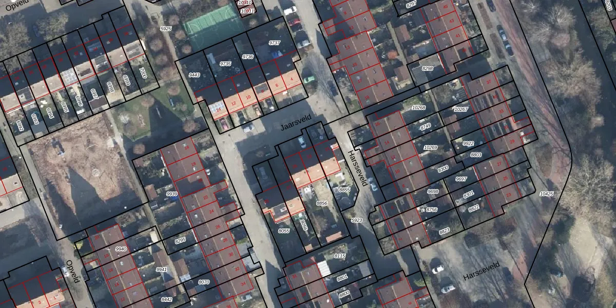 Het perceel waarop Jaarsveld 23 staat heeft een oppervlakte van 386 m². Dit is een groot perceel. De perceeloppervlakte wordt geregistreerd door het Kadaster. Gedetailleerde informatie over de maten van dit perceel kunt u vinden in het rapport Kadastrale kaart met maatvoering van Jaarsveld 23.