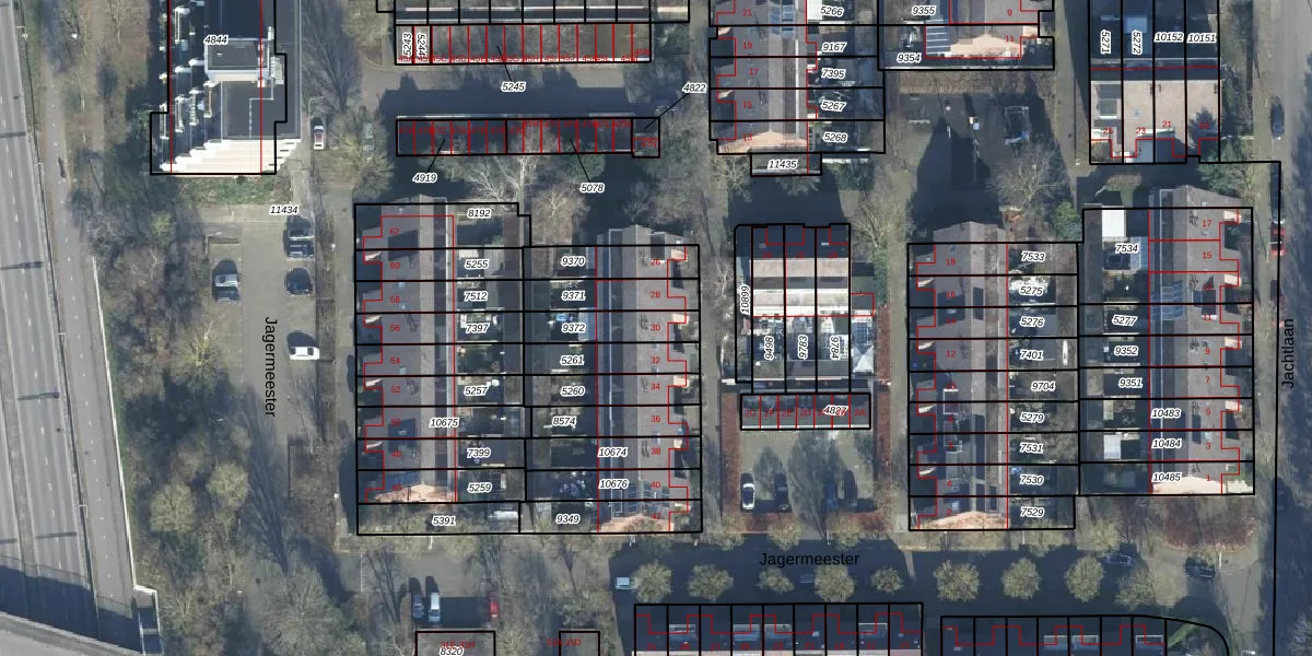Het perceel waarop Jagermeester 30 staat heeft een oppervlakte van 251 m². Dit is een middelgroot perceel. De perceeloppervlakte wordt geregistreerd door het Kadaster. Gedetailleerde informatie over de maten van dit perceel kunt u vinden in het rapport Kadastrale kaart met maatvoering van Jagermeester 30.