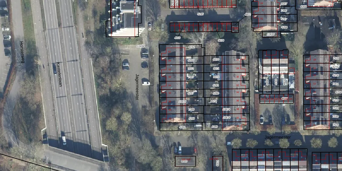 Het perceel waarop Jagermeester 54 staat heeft een oppervlakte van 251 m². Dit is een middelgroot perceel. De perceeloppervlakte wordt geregistreerd door het Kadaster. Gedetailleerde informatie over de maten van dit perceel kunt u vinden in het rapport Kadastrale kaart met maatvoering van Jagermeester 54.