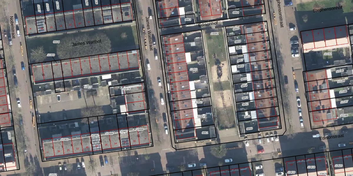 Het perceel waarop James Wattstraat 10 staat heeft een oppervlakte van 901 m². Dit is een groot perceel. De perceeloppervlakte wordt geregistreerd door het Kadaster. Gedetailleerde informatie over de maten van dit perceel kunt u vinden in het rapport Kadastrale kaart met maatvoering van James Wattstraat 10.