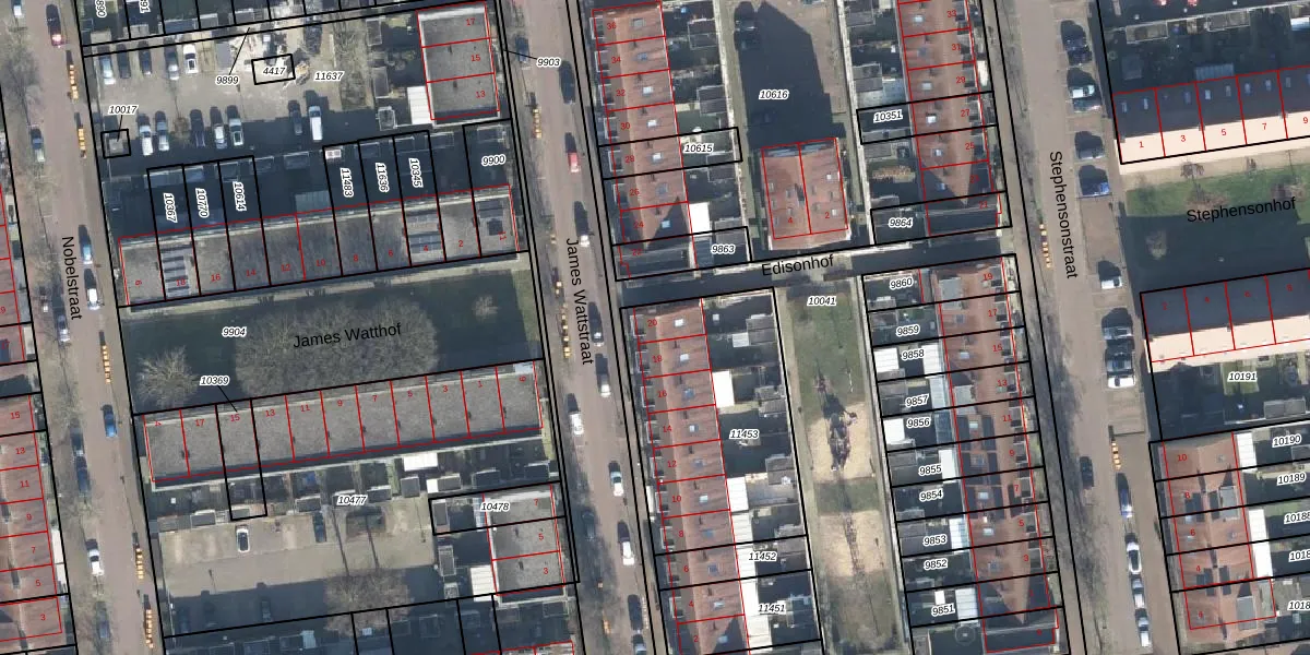 Het perceel waarop James Wattstraat 20 staat heeft een oppervlakte van 901 m². Dit is een groot perceel. De perceeloppervlakte wordt geregistreerd door het Kadaster. Gedetailleerde informatie over de maten van dit perceel kunt u vinden in het rapport Kadastrale kaart met maatvoering van James Wattstraat 20.