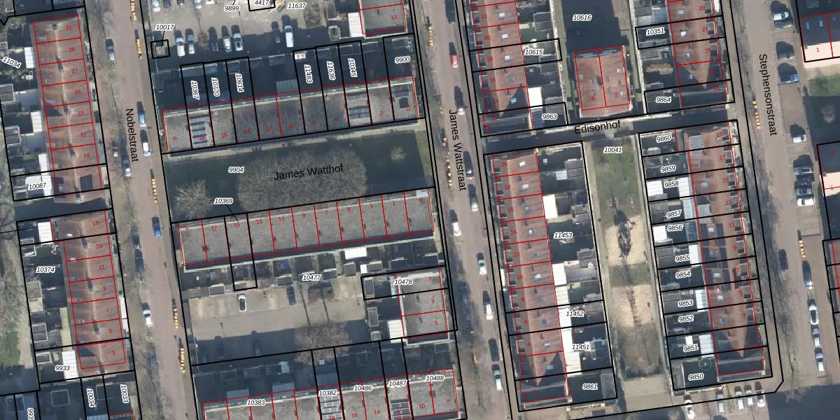 Het perceel waarop James Wattstraat 9 staat heeft een oppervlakte van 1978 m². Dit is een zeer groot perceel. De perceeloppervlakte wordt geregistreerd door het Kadaster. Gedetailleerde informatie over de maten van dit perceel kunt u vinden in het rapport Kadastrale kaart met maatvoering van James Wattstraat 9.