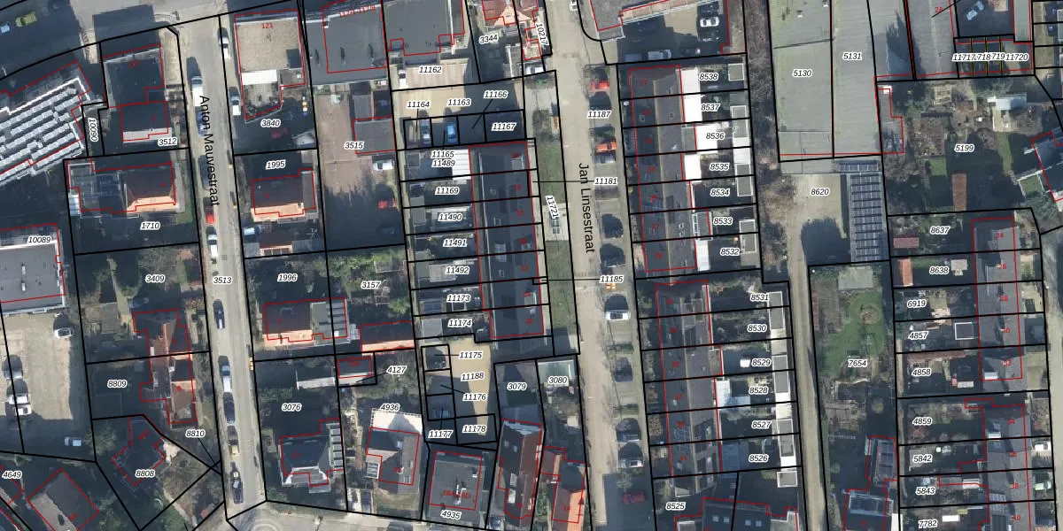 Gebruik de zoekbalk of klik op een perceel voor informatie over de adressen binnen dit perceel.