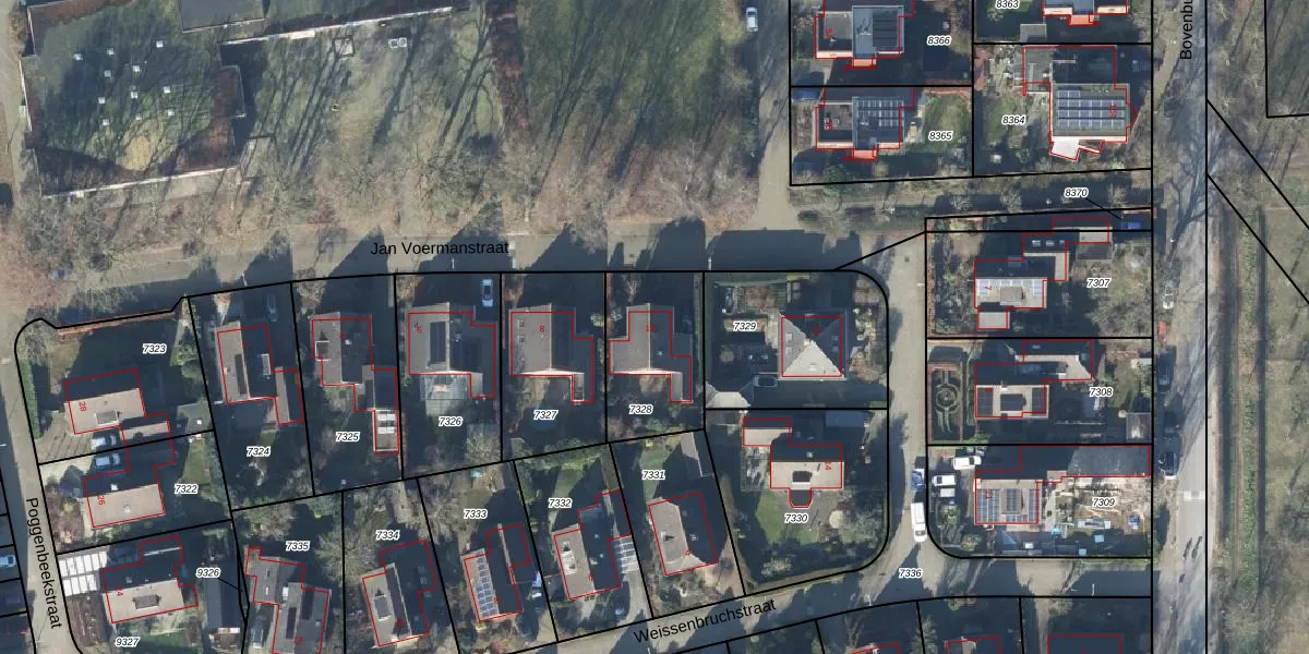 Het perceel waarop Jan Voermanstraat 10 staat heeft een oppervlakte van 375 m². Dit is een groot perceel. De perceeloppervlakte wordt geregistreerd door het Kadaster. Gedetailleerde informatie over de maten van dit perceel kunt u vinden in het rapport Kadastrale kaart met maatvoering van Jan Voermanstraat 10.