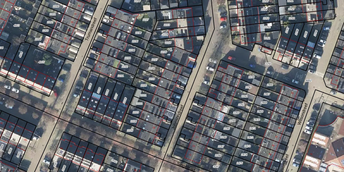 Gebruik de zoekbalk of klik op een perceel voor informatie over de adressen binnen dit perceel.