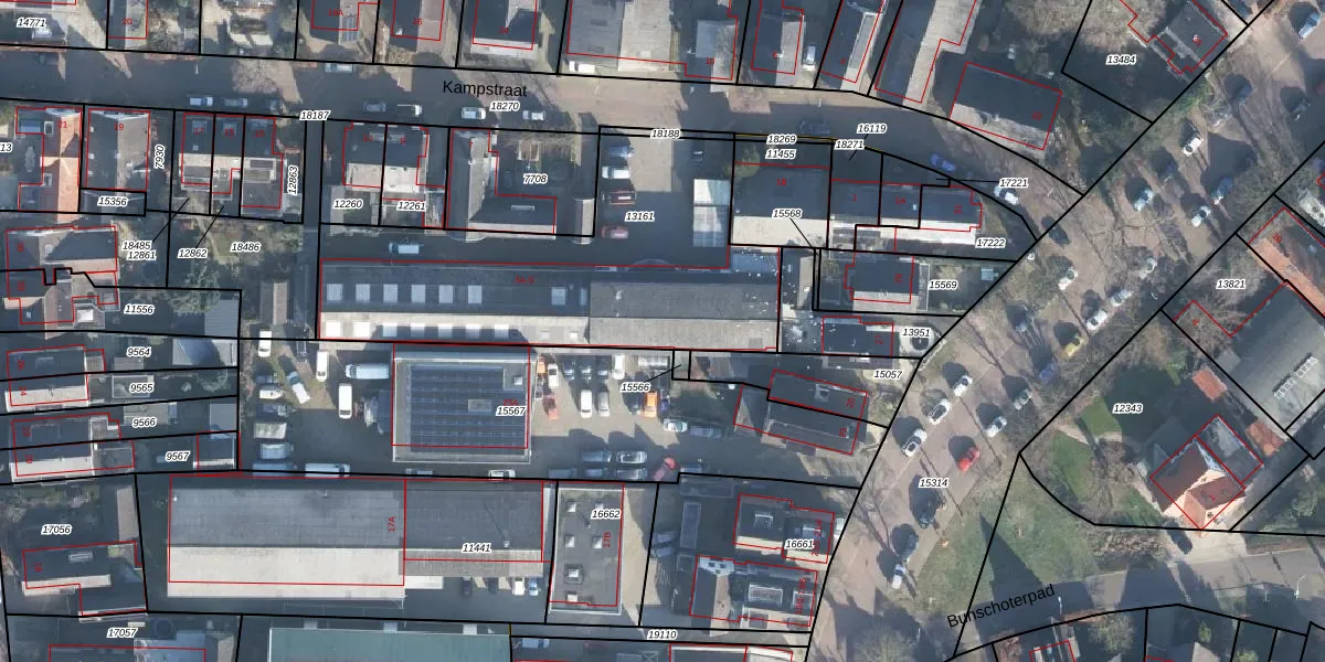 Het perceel waarop Kampstraat 3-D staat heeft een oppervlakte van 1495 m². Dit is een zeer groot perceel. De perceeloppervlakte wordt geregistreerd door het Kadaster. Gedetailleerde informatie over de maten van dit perceel kunt u vinden in het rapport Kadastrale kaart met maatvoering van Kampstraat 3-D.