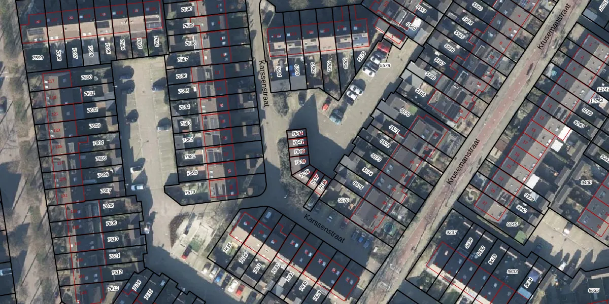 Het perceel waarop Karssenstraat 1-F staat heeft een oppervlakte van 18 m². Dit is een klein perceel. De perceeloppervlakte wordt geregistreerd door het Kadaster. Gedetailleerde informatie over de maten van dit perceel kunt u vinden in het rapport Kadastrale kaart met maatvoering van Karssenstraat 1-F.