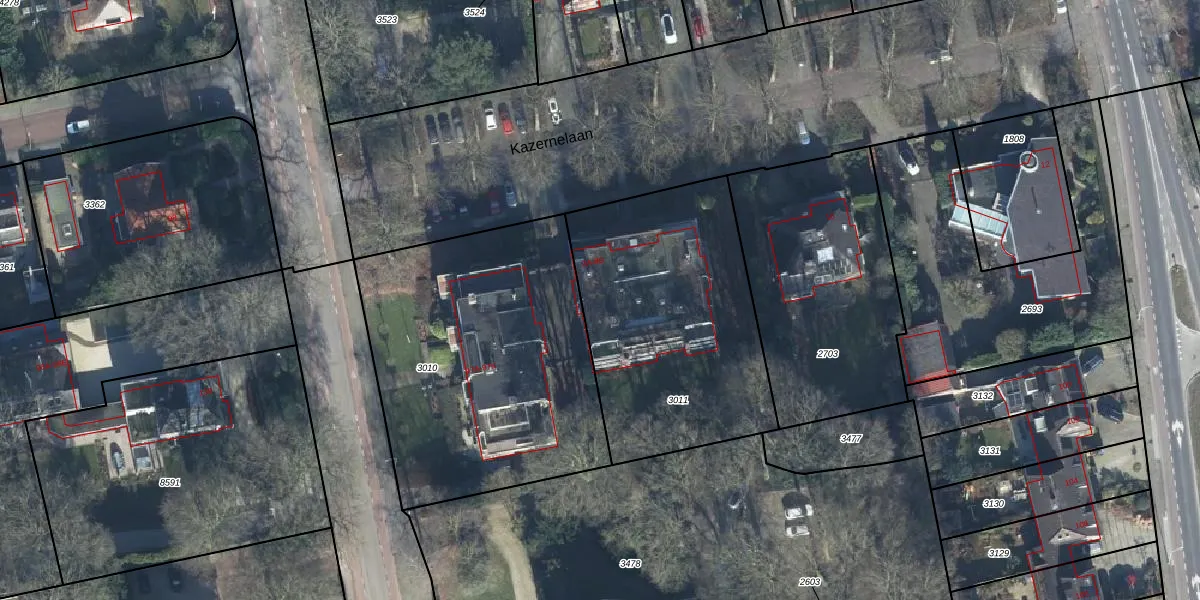 Het perceel waarop Kazernelaan 2-A staat heeft een oppervlakte van 1206 m². Dit is een zeer groot perceel. De perceeloppervlakte wordt geregistreerd door het Kadaster. Gedetailleerde informatie over de maten van dit perceel kunt u vinden in het rapport Kadastrale kaart met maatvoering van Kazernelaan 2-A.