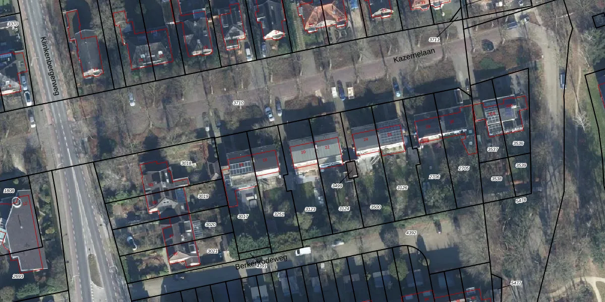 Kazernelaan 20 is gelegen op kadastraal perceel EDE01C3123. Deze kadastrale aanduiding is uniek en wordt gebruikt door het Kadaster om eigendomsrechten en andere zakelijke rechten vast te leggen. Het perceel maakt onderdeel uit van de kadastrale gemeente Ede.