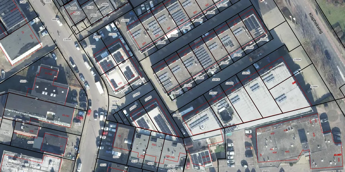 Gebruik de zoekbalk of klik op een perceel voor informatie over de adressen binnen dit perceel.