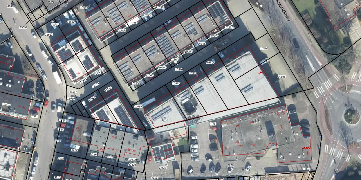 Klaphekweg 34-E is gelegen op kadastraal perceel EDE01D10977. Deze kadastrale aanduiding is uniek en wordt gebruikt door het Kadaster om eigendomsrechten en andere zakelijke rechten vast te leggen. Het perceel maakt onderdeel uit van de kadastrale gemeente Ede.