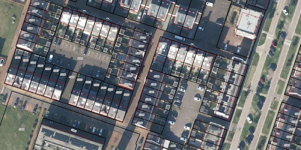Krimperij 14 is gelegen op kadastraal perceel EDE01C5339. Deze kadastrale aanduiding is uniek en wordt gebruikt door het Kadaster om eigendomsrechten en andere zakelijke rechten vast te leggen. Het perceel maakt onderdeel uit van de kadastrale gemeente Ede.