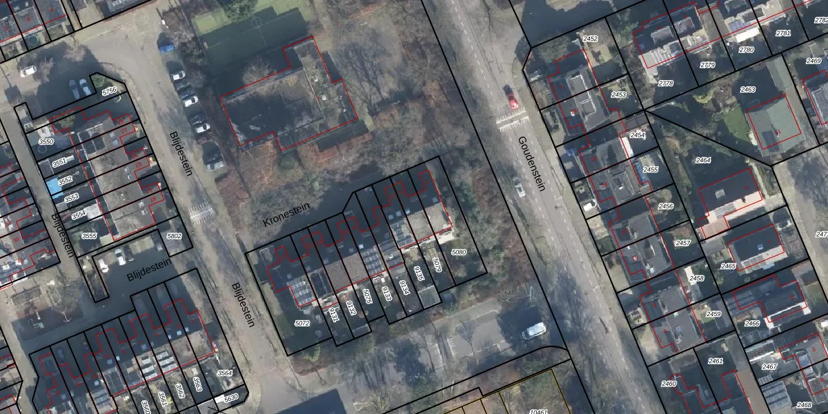 Gebruik de zoekbalk of klik op een perceel voor informatie over de adressen binnen dit perceel.