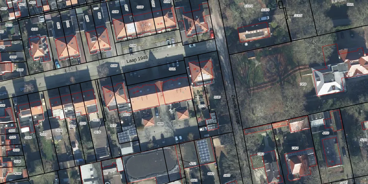 Het perceel waarop Laan 1948 3-B staat heeft een oppervlakte van 1225 m². Dit is een zeer groot perceel. De perceeloppervlakte wordt geregistreerd door het Kadaster. Gedetailleerde informatie over de maten van dit perceel kunt u vinden in het rapport Kadastrale kaart met maatvoering van Laan 1948 3-B.