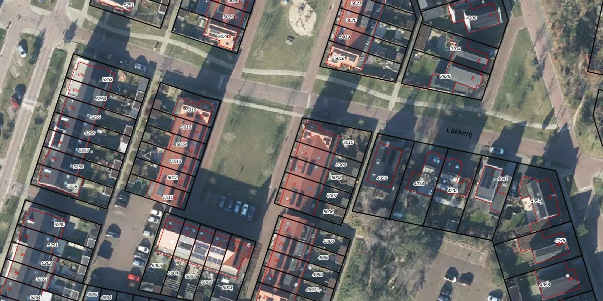 Het perceel waarop Lakkerij 13 staat heeft een oppervlakte van 126 m². Dit is een middelgroot perceel. De perceeloppervlakte wordt geregistreerd door het Kadaster. Gedetailleerde informatie over de maten van dit perceel kunt u vinden in het rapport Kadastrale kaart met maatvoering van Lakkerij 13.