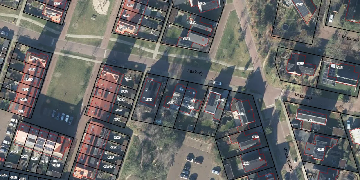 Gebruik de zoekbalk of klik op een perceel voor informatie over de adressen binnen dit perceel.