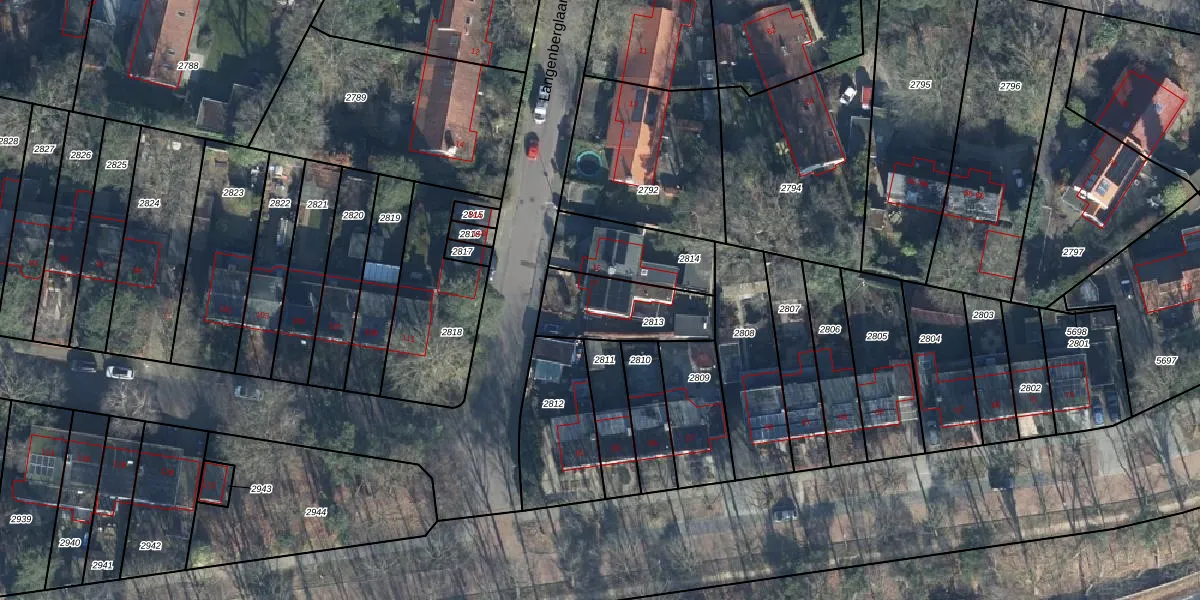 Gebruik de zoekbalk of klik op een perceel voor informatie over de adressen binnen dit perceel.