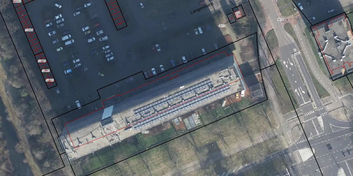 Het perceel waarop Langenhorst 509 staat heeft een oppervlakte van 4665 m². Dit is een zeer groot perceel. De perceeloppervlakte wordt geregistreerd door het Kadaster. Gedetailleerde informatie over de maten van dit perceel kunt u vinden in het rapport Kadastrale kaart met maatvoering van Langenhorst 509.