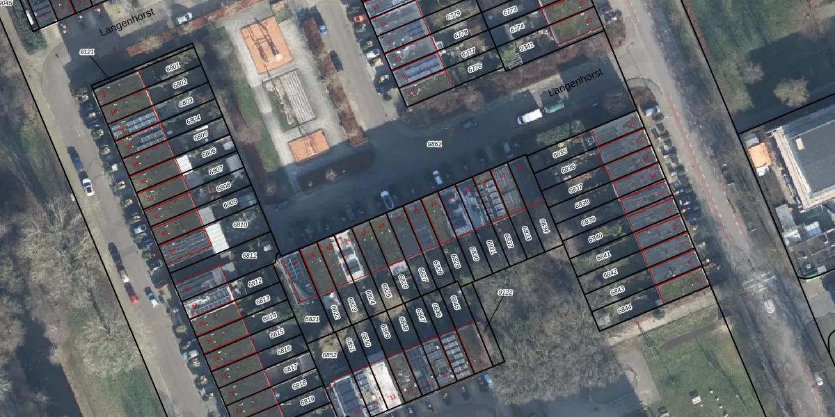 Het perceel waarop Langenhorst 72 staat heeft een oppervlakte van 99 m². Dit is een klein perceel. De perceeloppervlakte wordt geregistreerd door het Kadaster. Gedetailleerde informatie over de maten van dit perceel kunt u vinden in het rapport Kadastrale kaart met maatvoering van Langenhorst 72.
