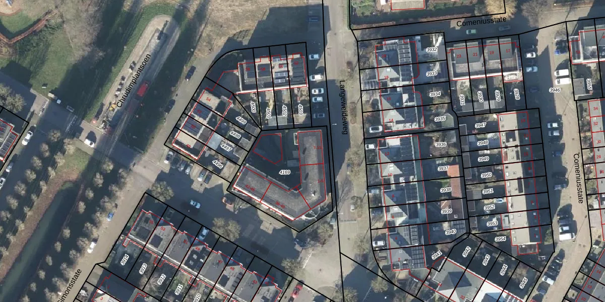 Het perceel waarop het adres ligt is EDE01-E-4169. De afkorting 'EDE01' staat voor kadastrale gemeente Ede. Het perceel is kleiner dan gemiddeld in Ede. Het perceel is 855 m² groot, terwijl het gemiddelde ligt op 2764,63 m². De grootste perceeloppervlakte in de kadastrale gemeente is 2,10 km². De kleinste oppervlakte bedraagt 0 m². Er zijn 12 adressen aanwezig op het perceel. De laatste wijziging in het de Basisregistratie Kadaster (BRK) was op 21-06-1999.