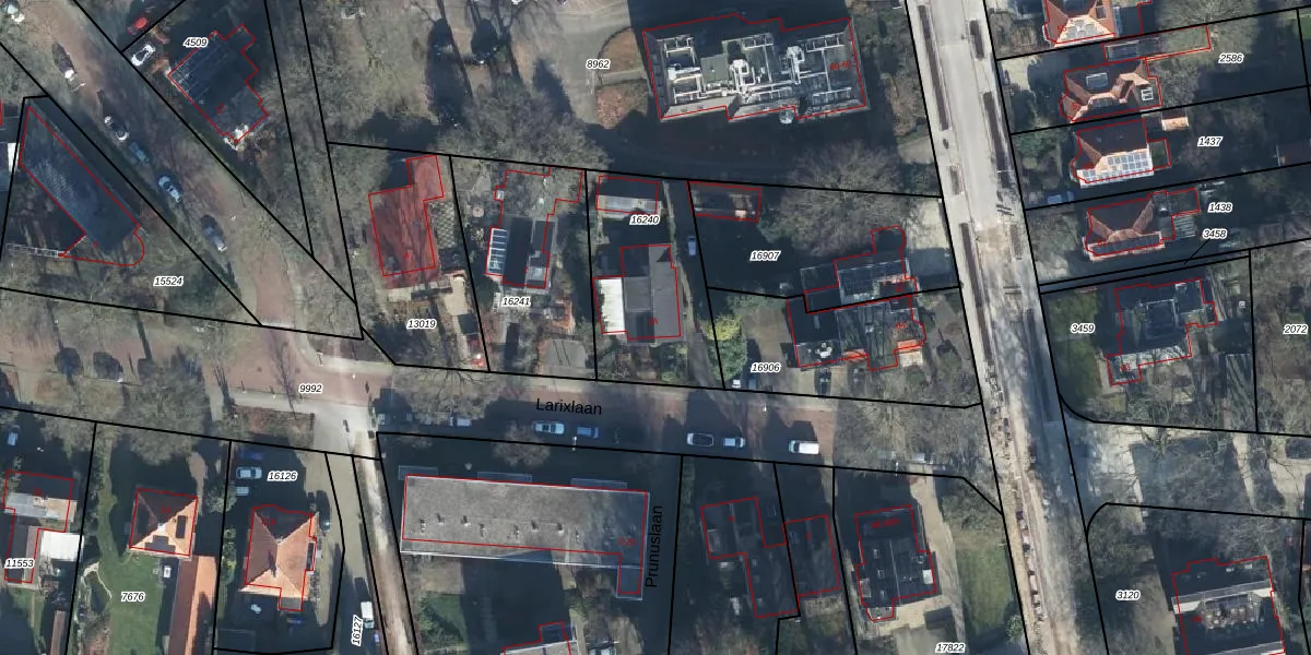 Gebruik de zoekbalk of klik op een perceel voor informatie over de adressen binnen dit perceel.