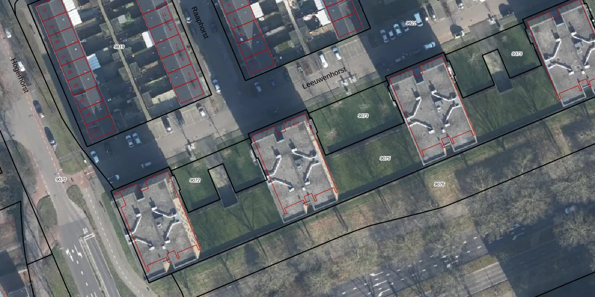 Leeuwenhorst 107 is gelegen op kadastraal perceel EDE01F9075. Deze kadastrale aanduiding is uniek en wordt gebruikt door het Kadaster om eigendomsrechten en andere zakelijke rechten vast te leggen. Het perceel maakt onderdeel uit van de kadastrale gemeente Ede.