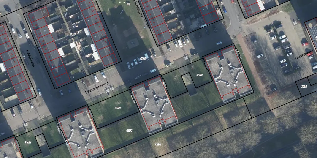 Het perceel waarop Leeuwenhorst 115 staat heeft een oppervlakte van 4435 m². Dit is een zeer groot perceel. De perceeloppervlakte wordt geregistreerd door het Kadaster. Gedetailleerde informatie over de maten van dit perceel kunt u vinden in het rapport Kadastrale kaart met maatvoering van Leeuwenhorst 115.