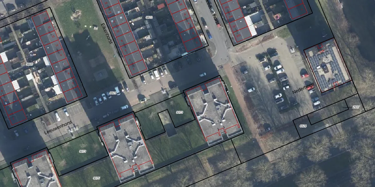 Het perceel waarop Leeuwenhorst 169 staat heeft een oppervlakte van 4435 m². Dit is een zeer groot perceel. De perceeloppervlakte wordt geregistreerd door het Kadaster. Gedetailleerde informatie over de maten van dit perceel kunt u vinden in het rapport Kadastrale kaart met maatvoering van Leeuwenhorst 169.
