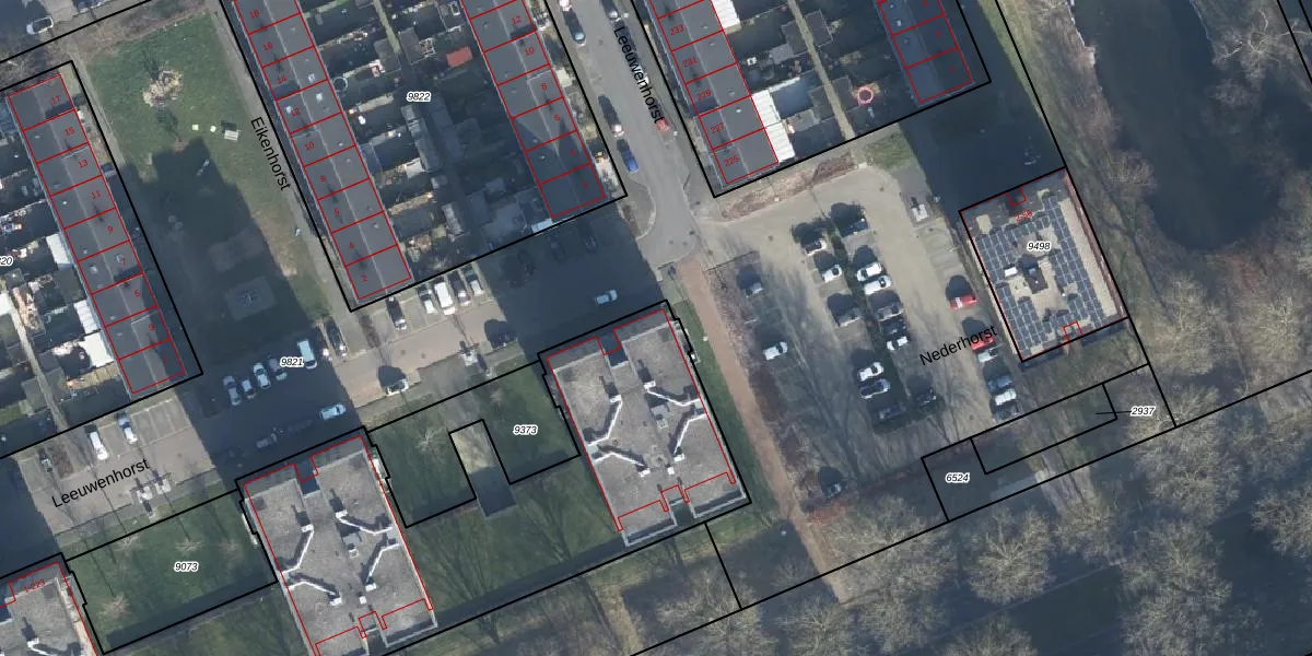 Het perceel waarop Leeuwenhorst 179 staat heeft een oppervlakte van 4435 m². Dit is een zeer groot perceel. De perceeloppervlakte wordt geregistreerd door het Kadaster. Gedetailleerde informatie over de maten van dit perceel kunt u vinden in het rapport Kadastrale kaart met maatvoering van Leeuwenhorst 179.