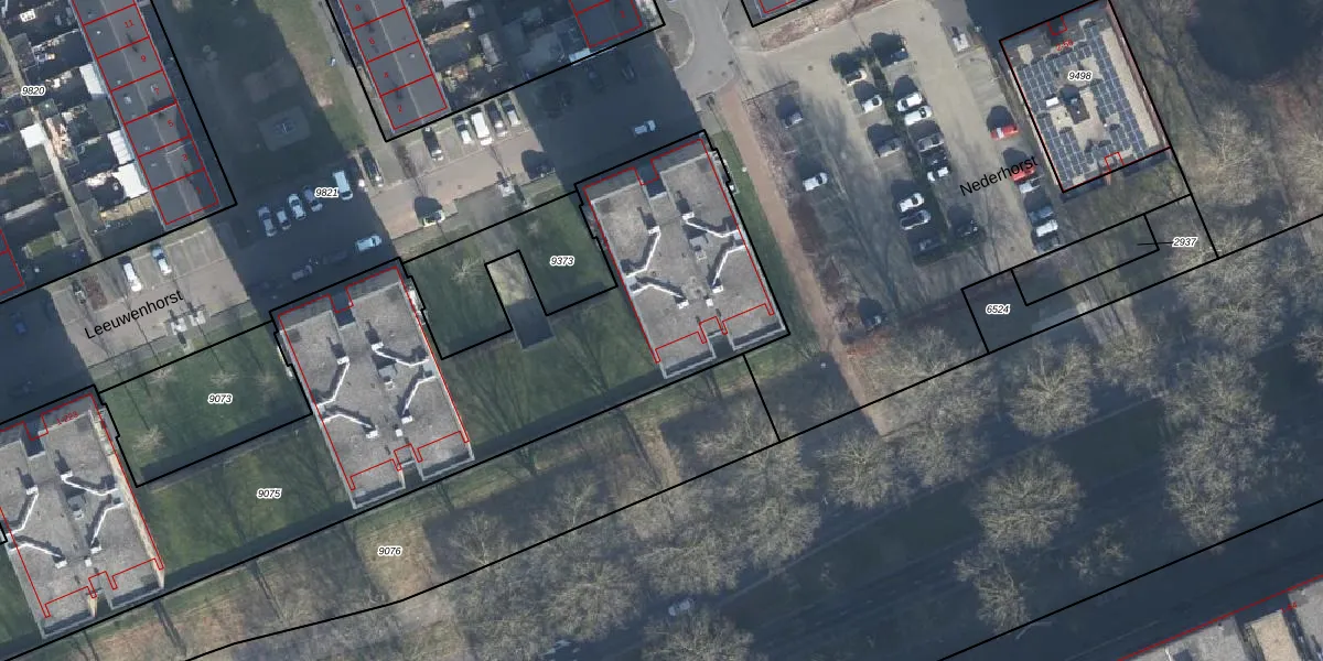 Het perceel waarop Leeuwenhorst 189 staat heeft een oppervlakte van 4435 m². Dit is een zeer groot perceel. De perceeloppervlakte wordt geregistreerd door het Kadaster. Gedetailleerde informatie over de maten van dit perceel kunt u vinden in het rapport Kadastrale kaart met maatvoering van Leeuwenhorst 189.