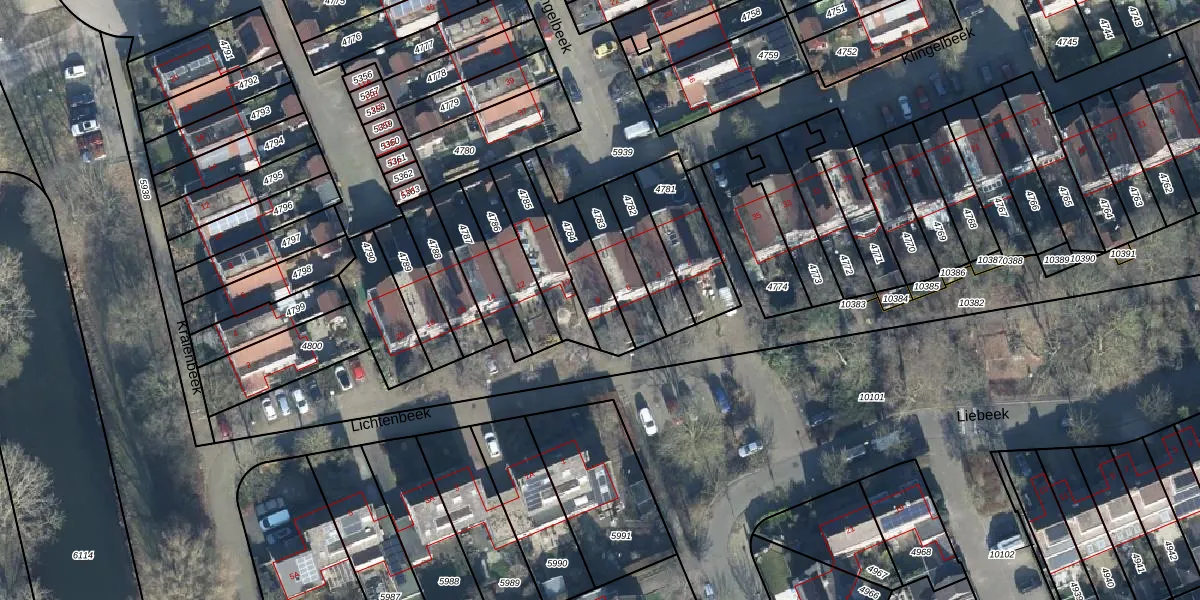 Gebruik de zoekbalk of klik op een perceel voor informatie over de adressen binnen dit perceel.