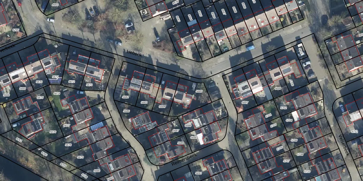 Gebruik de zoekbalk of klik op een perceel voor informatie over de adressen binnen dit perceel.