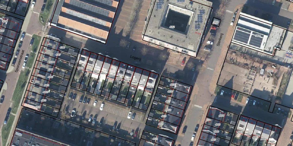 Gebruik de zoekbalk of klik op een perceel voor informatie over de adressen binnen dit perceel.