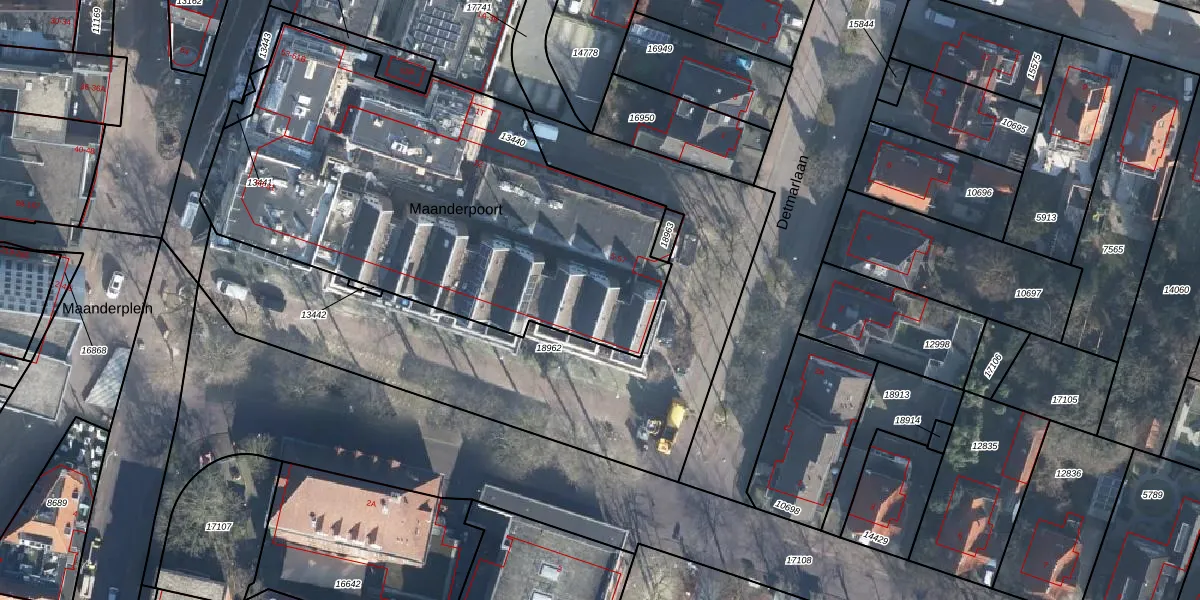 Het perceel waarop Maanderpoort 37 staat heeft een oppervlakte van 2410 m². Dit is een zeer groot perceel. De perceeloppervlakte wordt geregistreerd door het Kadaster. Gedetailleerde informatie over de maten van dit perceel kunt u vinden in het rapport Kadastrale kaart met maatvoering van Maanderpoort 37.