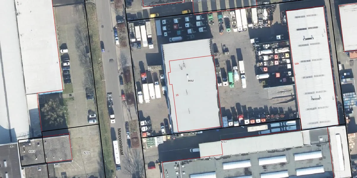 Het perceel waarop Marconistraat 15 staat heeft een oppervlakte van 7715 m². Dit is een zeer groot perceel. De perceeloppervlakte wordt geregistreerd door het Kadaster. Gedetailleerde informatie over de maten van dit perceel kunt u vinden in het rapport Kadastrale kaart met maatvoering van Marconistraat 15.
