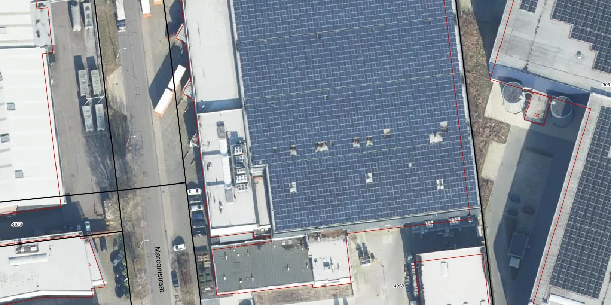Het perceel waarop Marconistraat 3 staat heeft een oppervlakte van 1,3 ha. Dit is een zeer groot perceel. De perceeloppervlakte wordt geregistreerd door het Kadaster. Gedetailleerde informatie over de maten van dit perceel kunt u vinden in het rapport Kadastrale kaart met maatvoering van Marconistraat 3.
