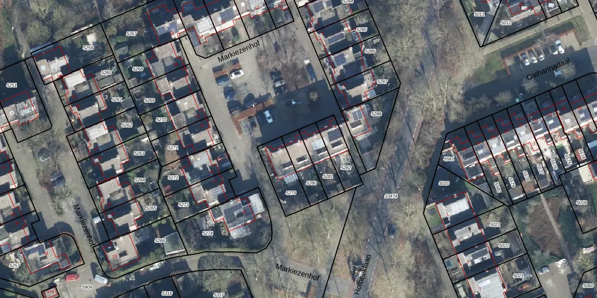 Het perceel waarop Markiezenhof 2 staat heeft een oppervlakte van 159 m². Dit is een middelgroot perceel. De perceeloppervlakte wordt geregistreerd door het Kadaster. Gedetailleerde informatie over de maten van dit perceel kunt u vinden in het rapport Kadastrale kaart met maatvoering van Markiezenhof 2.