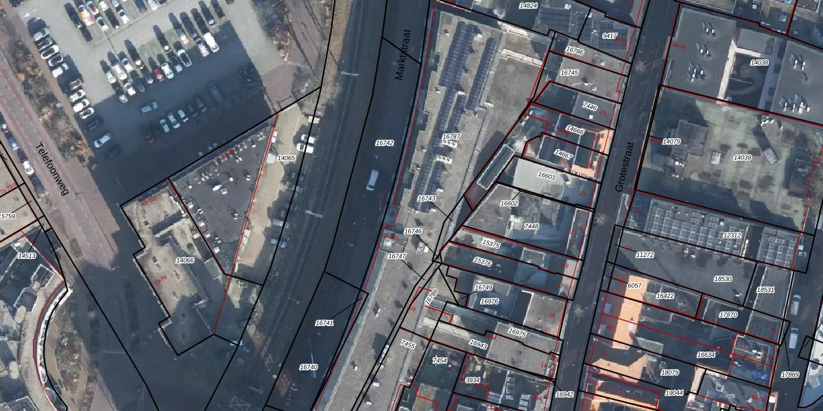 Het perceel waarop Marktstraat 131 staat heeft een oppervlakte van 1848 m². Dit is een zeer groot perceel. De perceeloppervlakte wordt geregistreerd door het Kadaster. Gedetailleerde informatie over de maten van dit perceel kunt u vinden in het rapport Kadastrale kaart met maatvoering van Marktstraat 131.