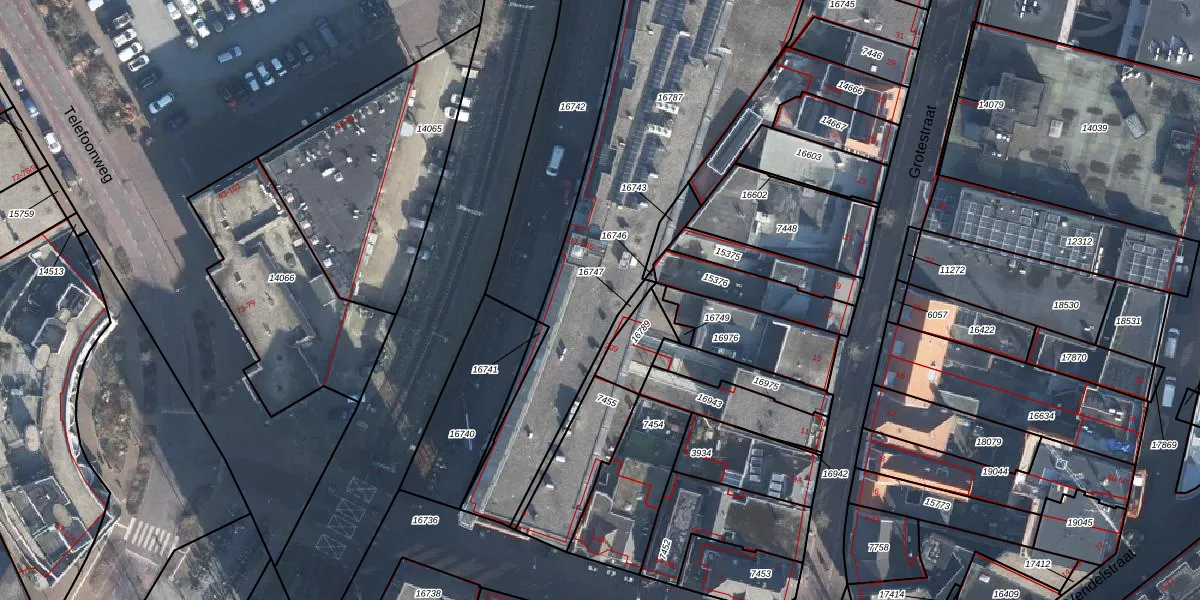 Het perceel waarop Marktstraat 173 staat heeft een oppervlakte van 1848 m². Dit is een zeer groot perceel. De perceeloppervlakte wordt geregistreerd door het Kadaster. Gedetailleerde informatie over de maten van dit perceel kunt u vinden in het rapport Kadastrale kaart met maatvoering van Marktstraat 173.