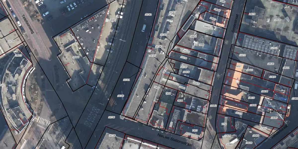 Het perceel waarop Marktstraat 177 staat heeft een oppervlakte van 1848 m². Dit is een zeer groot perceel. De perceeloppervlakte wordt geregistreerd door het Kadaster. Gedetailleerde informatie over de maten van dit perceel kunt u vinden in het rapport Kadastrale kaart met maatvoering van Marktstraat 177.