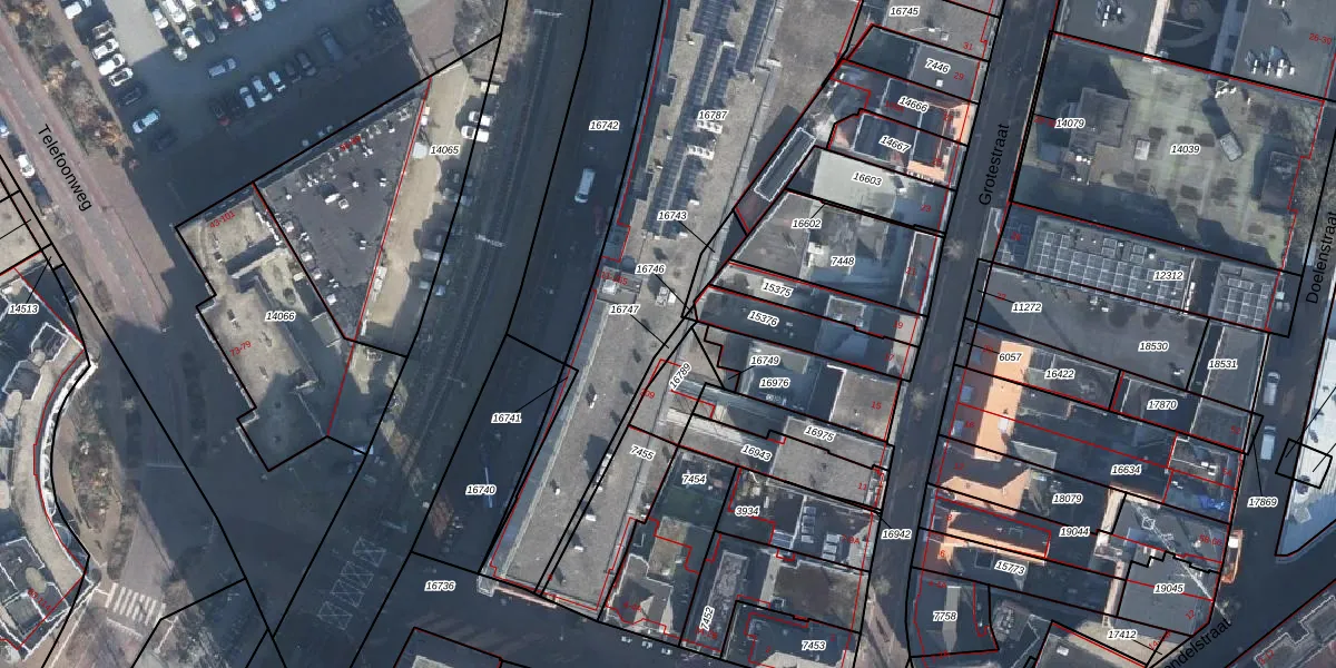 Het perceel waarop Marktstraat 205 staat heeft een oppervlakte van 1848 m². Dit is een zeer groot perceel. De perceeloppervlakte wordt geregistreerd door het Kadaster. Gedetailleerde informatie over de maten van dit perceel kunt u vinden in het rapport Kadastrale kaart met maatvoering van Marktstraat 205.