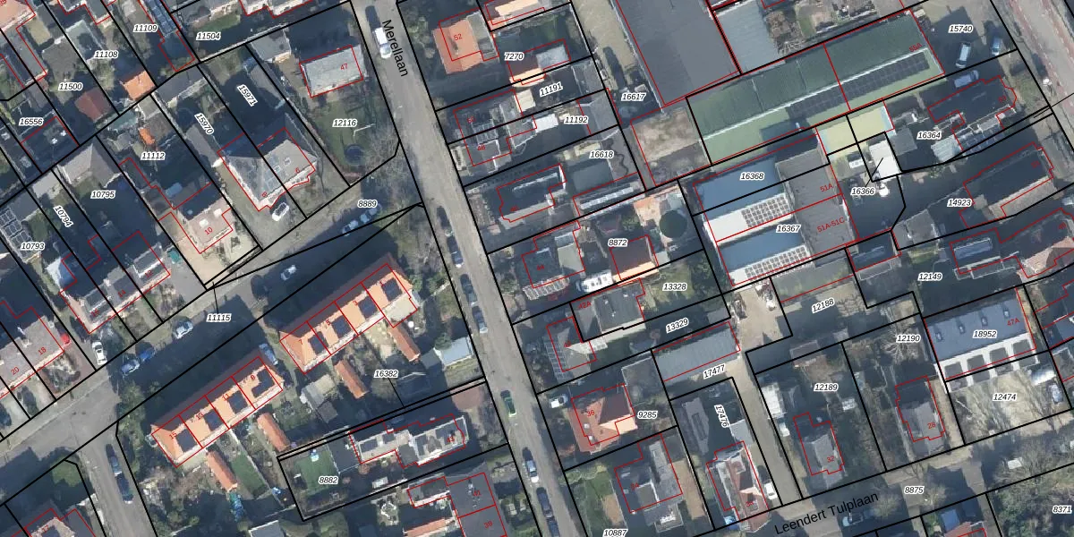 Het perceel waarop Merellaan 44 staat heeft een oppervlakte van 539 m². Dit is een groot perceel. De perceeloppervlakte wordt geregistreerd door het Kadaster. Gedetailleerde informatie over de maten van dit perceel kunt u vinden in het rapport Kadastrale kaart met maatvoering van Merellaan 44.