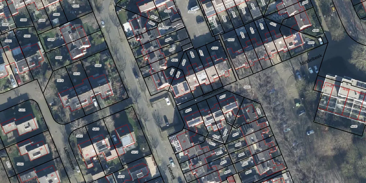Gebruik de zoekbalk of klik op een perceel voor informatie over de adressen binnen dit perceel.