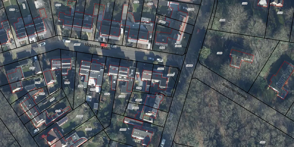 Het perceel waarop Middelberglaan 14 staat heeft een oppervlakte van 235 m². Dit is een middelgroot perceel. De perceeloppervlakte wordt geregistreerd door het Kadaster. Gedetailleerde informatie over de maten van dit perceel kunt u vinden in het rapport Kadastrale kaart met maatvoering van Middelberglaan 14.