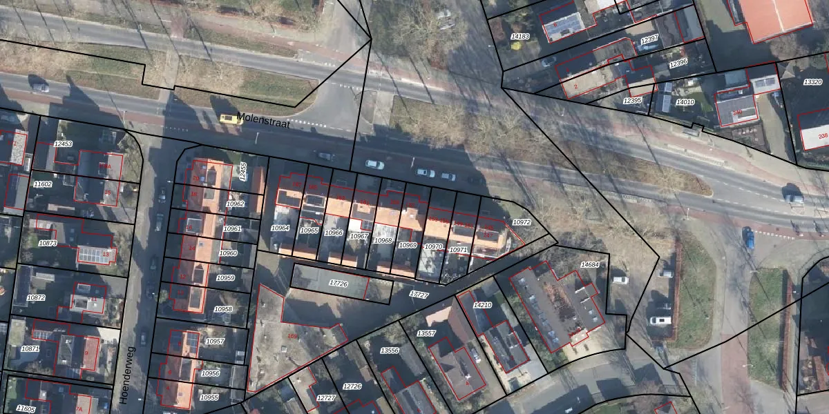 Het perceel waarop Molenstraat 157 staat heeft een oppervlakte van 141 m². Dit is een middelgroot perceel. De perceeloppervlakte wordt geregistreerd door het Kadaster. Gedetailleerde informatie over de maten van dit perceel kunt u vinden in het rapport Kadastrale kaart met maatvoering van Molenstraat 157.