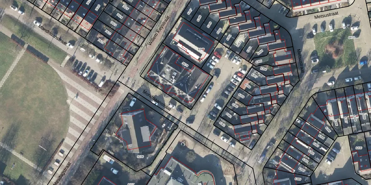 Het perceel waarop Mondriaanstraat 19 staat heeft een oppervlakte van 714 m². Dit is een groot perceel. De perceeloppervlakte wordt geregistreerd door het Kadaster. Gedetailleerde informatie over de maten van dit perceel kunt u vinden in het rapport Kadastrale kaart met maatvoering van Mondriaanstraat 19.