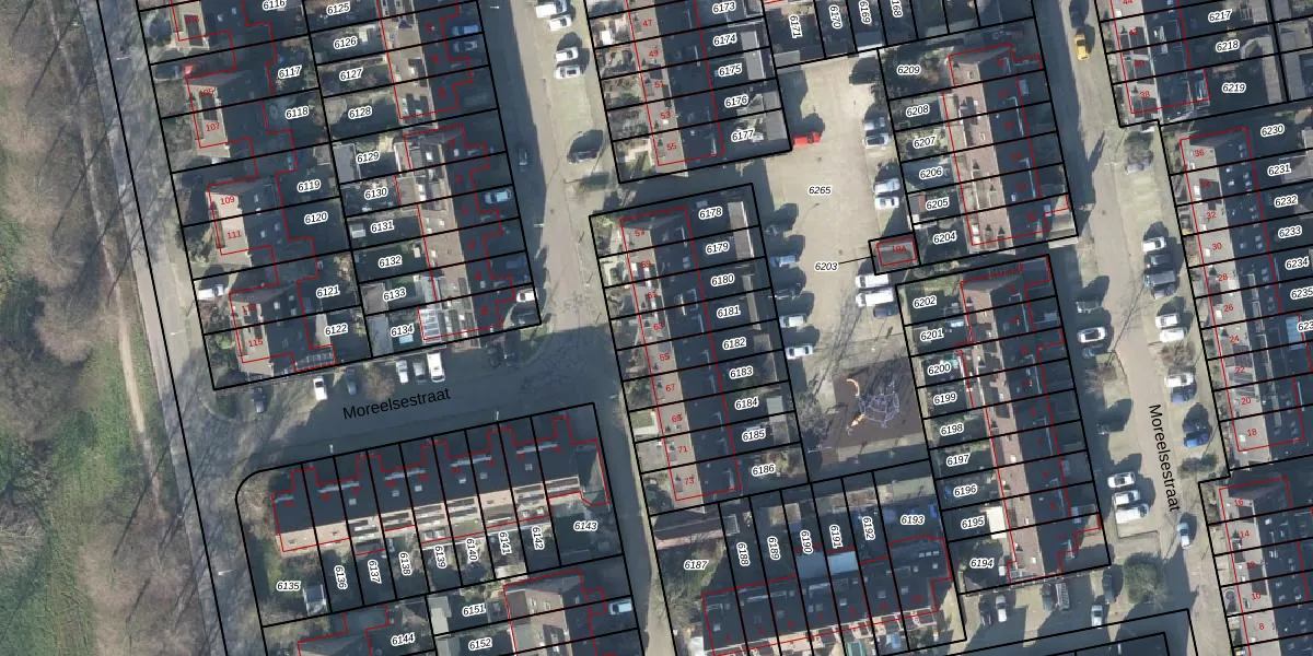 Het perceel waarop Moreelsestraat 63 staat heeft een oppervlakte van 120 m². Dit is een middelgroot perceel. De perceeloppervlakte wordt geregistreerd door het Kadaster. Gedetailleerde informatie over de maten van dit perceel kunt u vinden in het rapport Kadastrale kaart met maatvoering van Moreelsestraat 63.