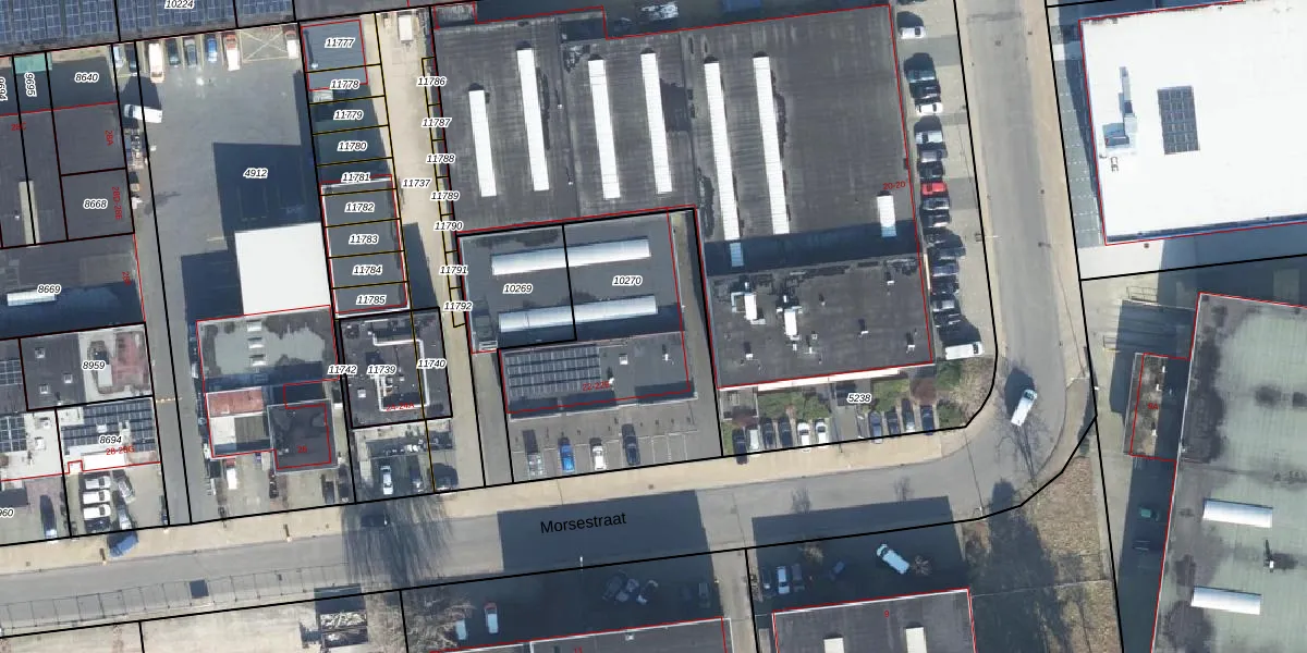 Het perceel waarop Morsestraat 22-D staat heeft een oppervlakte van 1039 m². Dit is een zeer groot perceel. De perceeloppervlakte wordt geregistreerd door het Kadaster. Gedetailleerde informatie over de maten van dit perceel kunt u vinden in het rapport Kadastrale kaart met maatvoering van Morsestraat 22-D.
