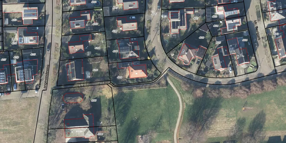 Mr. Beelpark 44 is gelegen op kadastraal perceel EDE01E4009. Deze kadastrale aanduiding is uniek en wordt gebruikt door het Kadaster om eigendomsrechten en andere zakelijke rechten vast te leggen. Het perceel maakt onderdeel uit van de kadastrale gemeente Ede.